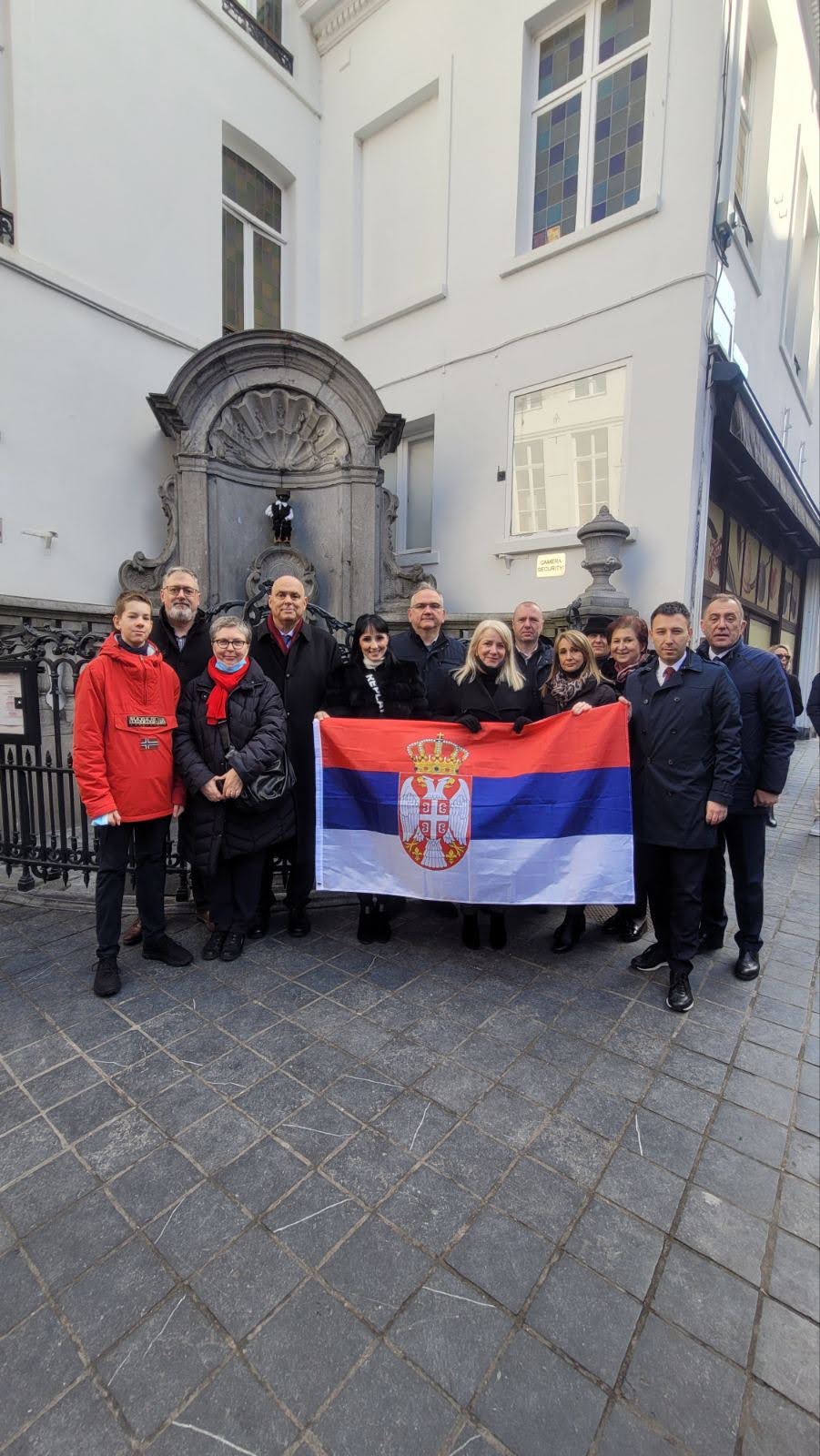 Традиционално у подне, колективи српских дипломатских представништава у Бриселу и припадници српске дијапоре, окупили су се на тргу испред познате статуе, где су у свечарској атмосфери разговарали са званицама и посетиоцима. О српској традицији и историјату Сретења говорио је Роберт Поповић, отправник послова Амбасаде Србије у Белгији.